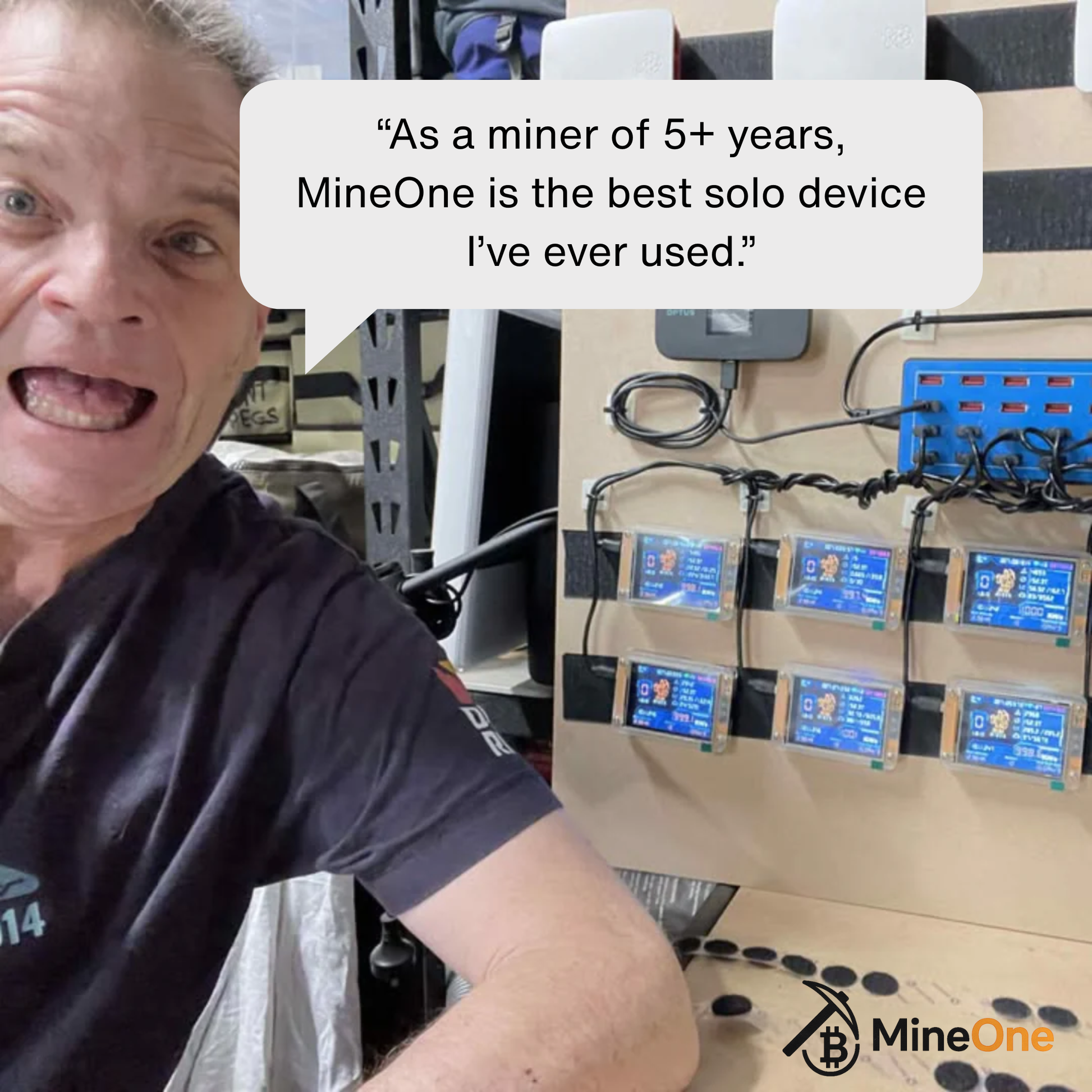 The MineOne PRO is a plug-and-play Bitcoin mining device that runs automatically, generating new “lottery tickets” every 10 minutes for the full Bitcoin block reward — 3.125 BTC (≈ $350,000). No setup, no effort — just 24/7 mining that quietly stacks your chances over time.